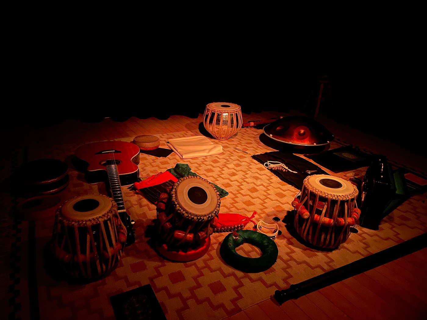 As the sessions progress, the focus shifts from instruction to music and storytelling. The musical sets were conceived as a way to allow the body/nervous system to relax and reset.